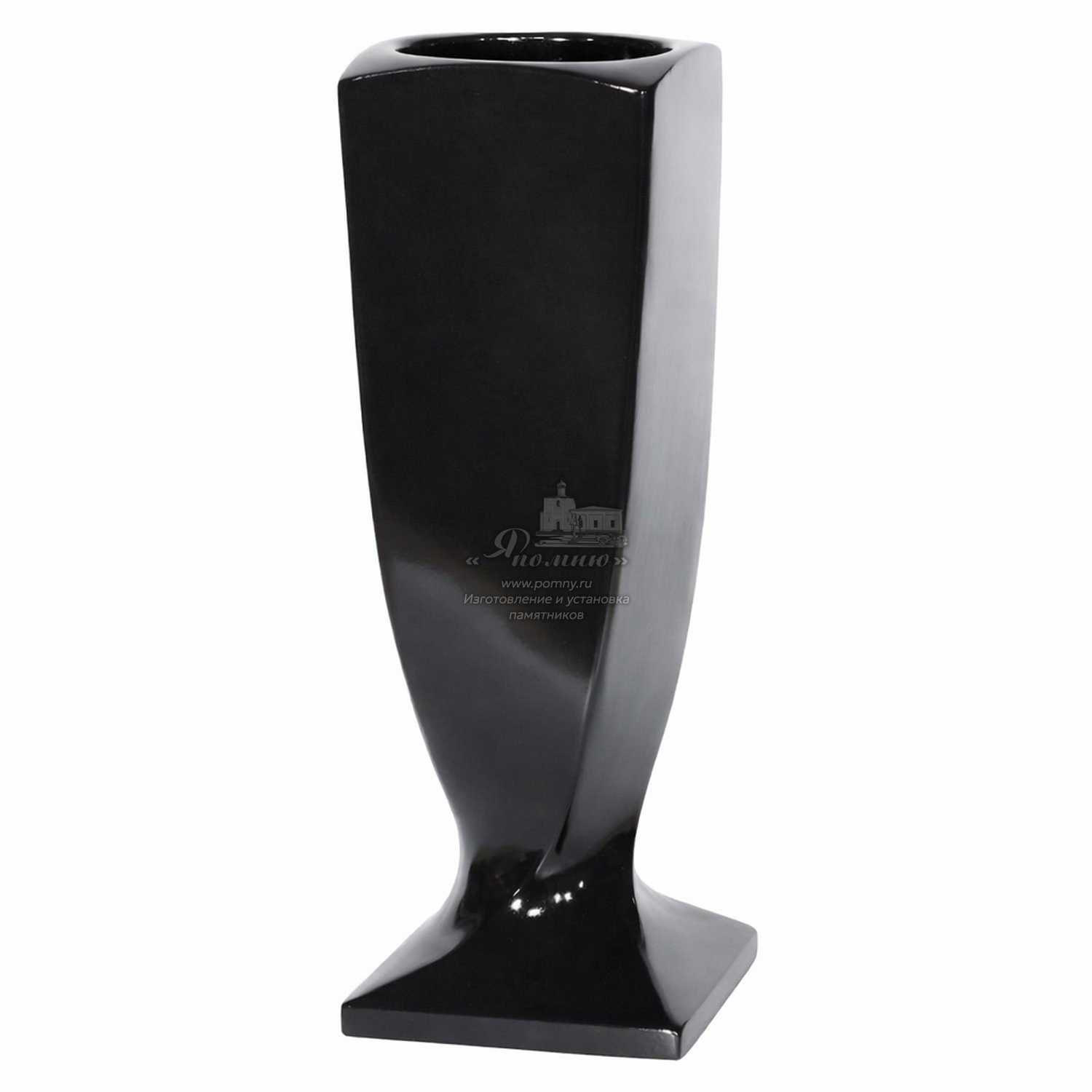 Ваза «Чёрная Спираль» выполнена из прочного полимергранита и отличается оригинальной скрученной формой, которая придаёт изделию современный и выразительный вид. Такая форма делает вазу заметным элементом оформления памятника, гармонично дополняя гранитные надгробия.