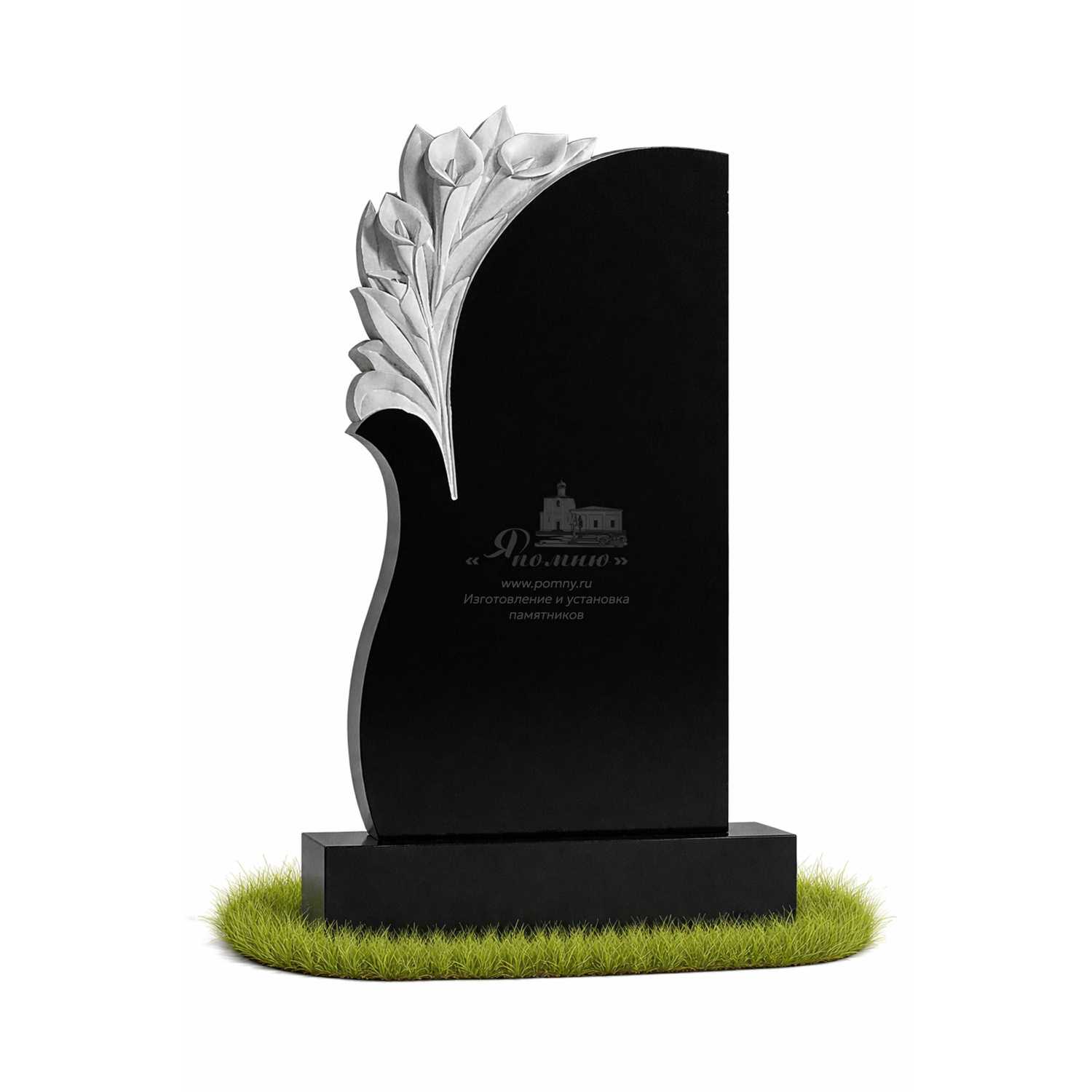 Памятник «Лилия Памяти» выполнен в утончённом стиле с изящной резьбой в виде цветов. Лилии символизируют чистоту, светлую память и уважение, создавая спокойный и благородный образ.