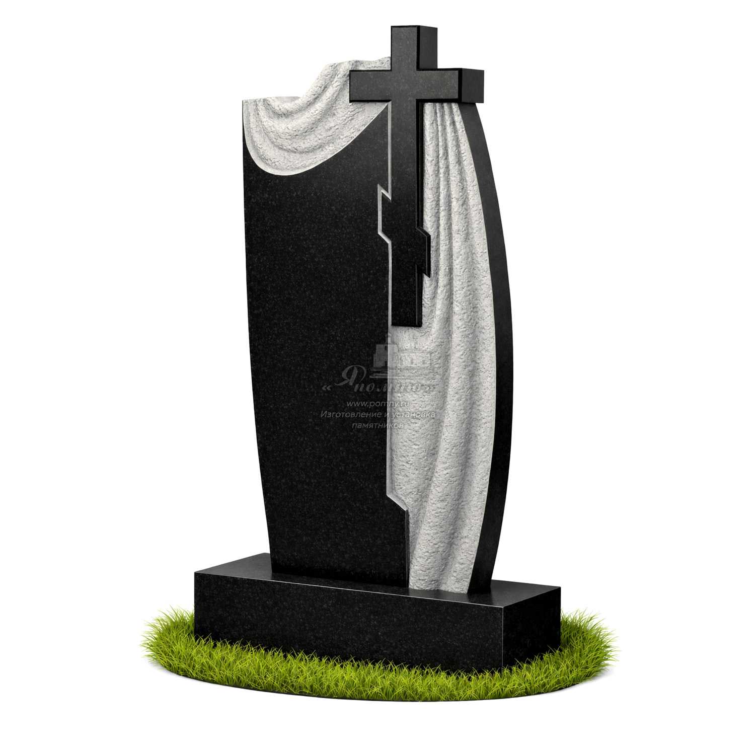 Памятник «Светлый Покров» — это выразительная модель с глубоким символизмом. Основной акцент сделан на контрасте чёрного полированного гранита и светлого резного покрытия, имитирующего ткань.