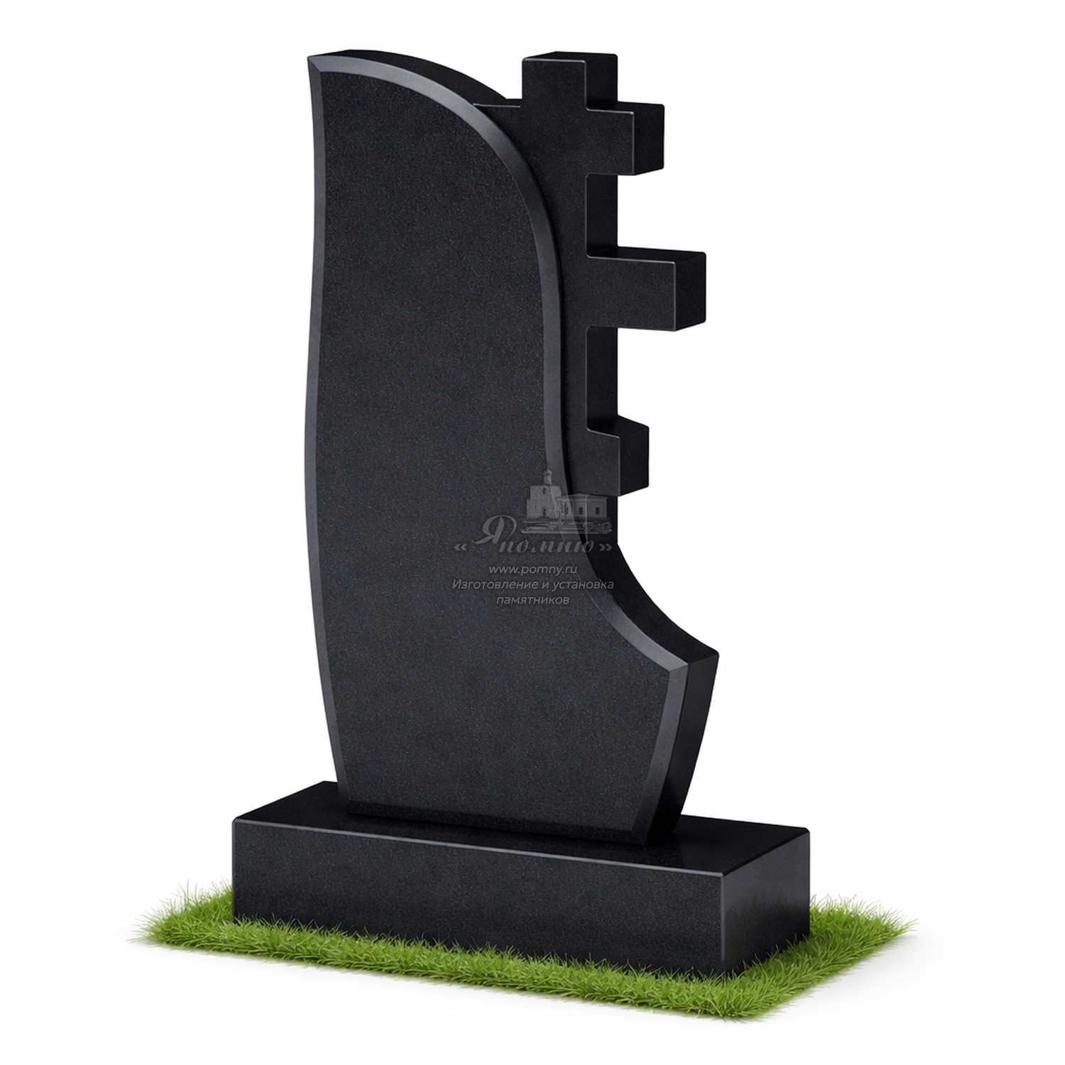Плавная линия стелы создаёт ощущение движения и лёгкости, а крест аккуратно вписан в композицию, не перегружая внешний вид.