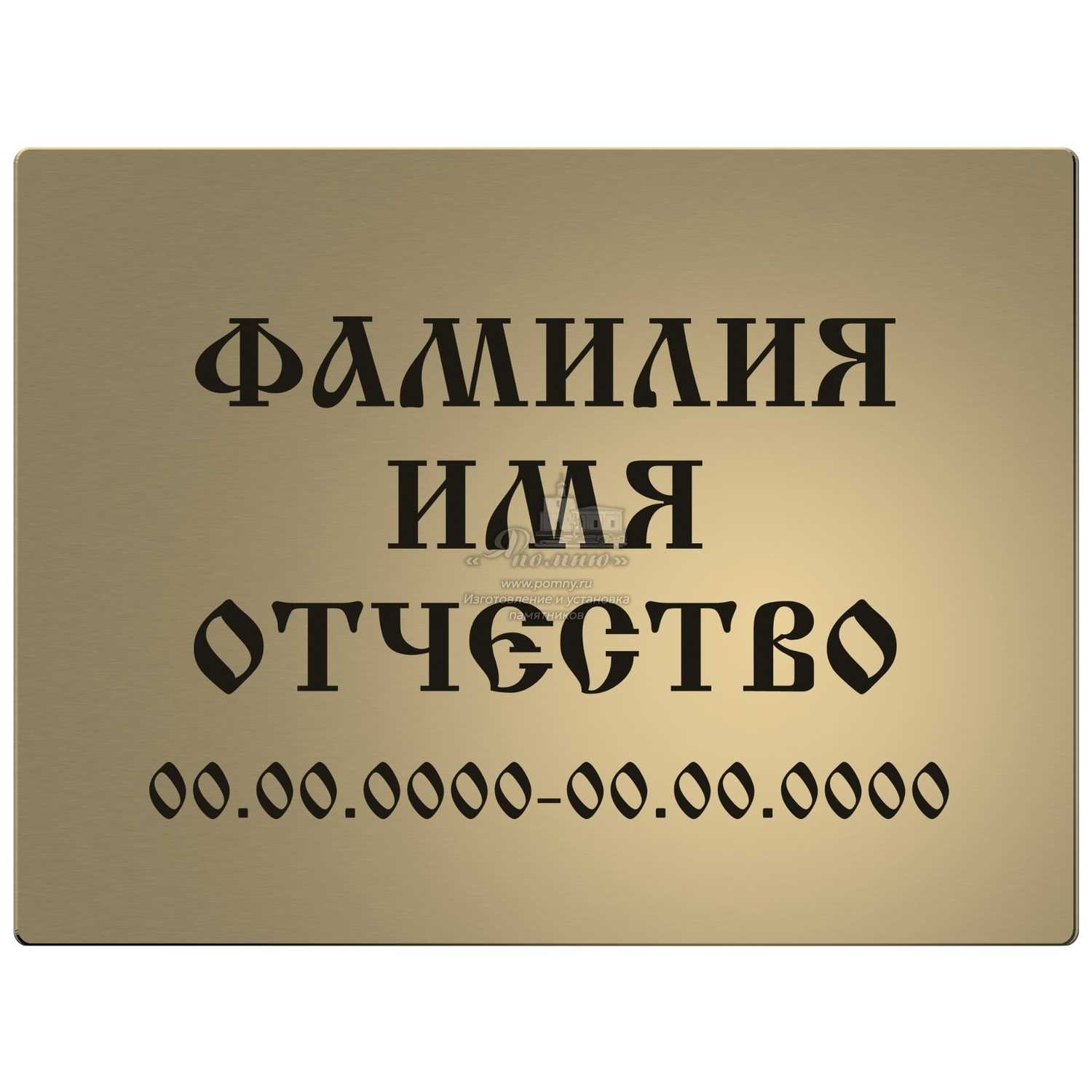 Классическая табличка на памятник из стали — универсальный вариант для нанесения фамилии, имени, отчества и дат жизни. Такой формат подходит для строгого и аккуратного оформления памятника, не перегружая общий вид мемориала.