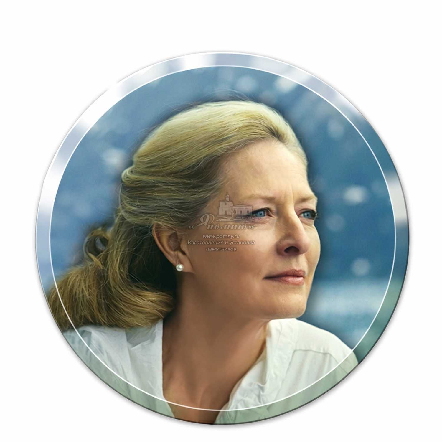 Цветной портрет на памятник из стекла круг — выразительное решение для мемориального оформления, которое позволяет сохранить образ близкого человека в максимально живом и естественном виде. Такой вариант помогает сделать памятник более индивидуальным и визуально завершенным.