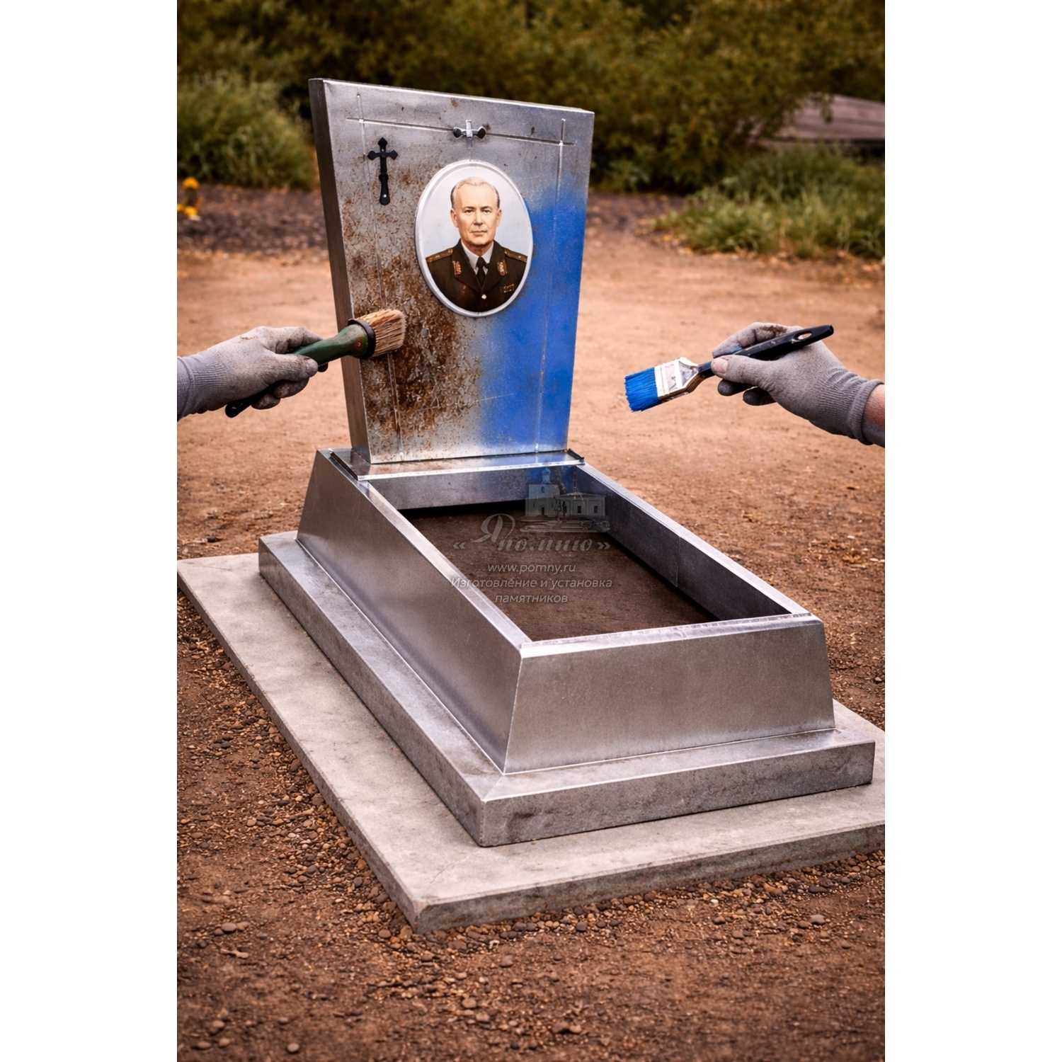Покраска металлического памятника проводится для восстановления аккуратного внешнего вида и защиты поверхности от коррозии. В процессе работ удаляются следы ржавчины, старое покрытие и загрязнения, после чего наносится новое защитно-декоративное покрытие. Это помогает продлить срок службы конструкции и сохранить достойный вид памятника.