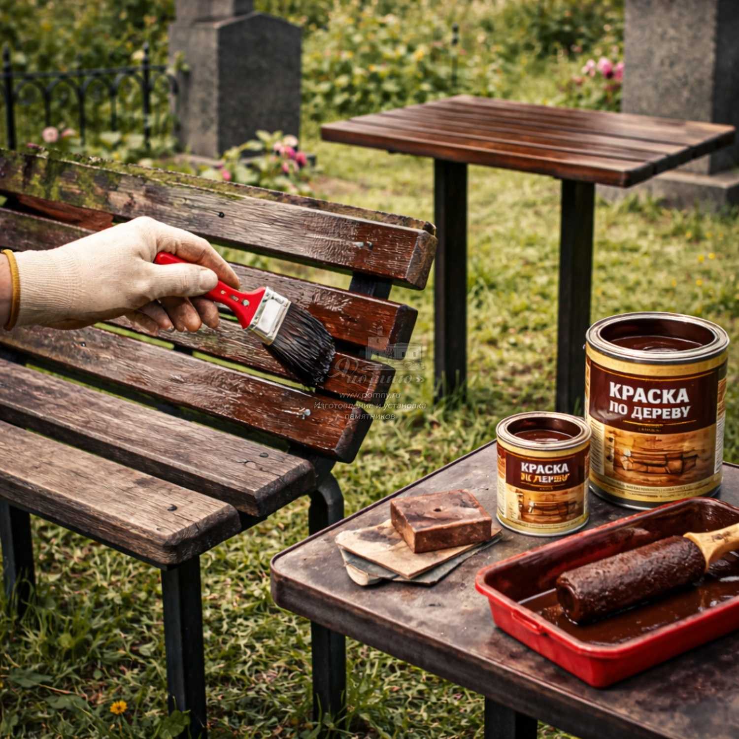 Покраска стола и лавочки на кладбище помогает привести в порядок элементы благоустройства участка и защитить их от разрушения. Обновляется покрытие деревянных и металлических частей, устраняются следы износа, влаги и старой краски. После обработки стол и лавочка приобретают более аккуратный и ухоженный вид.