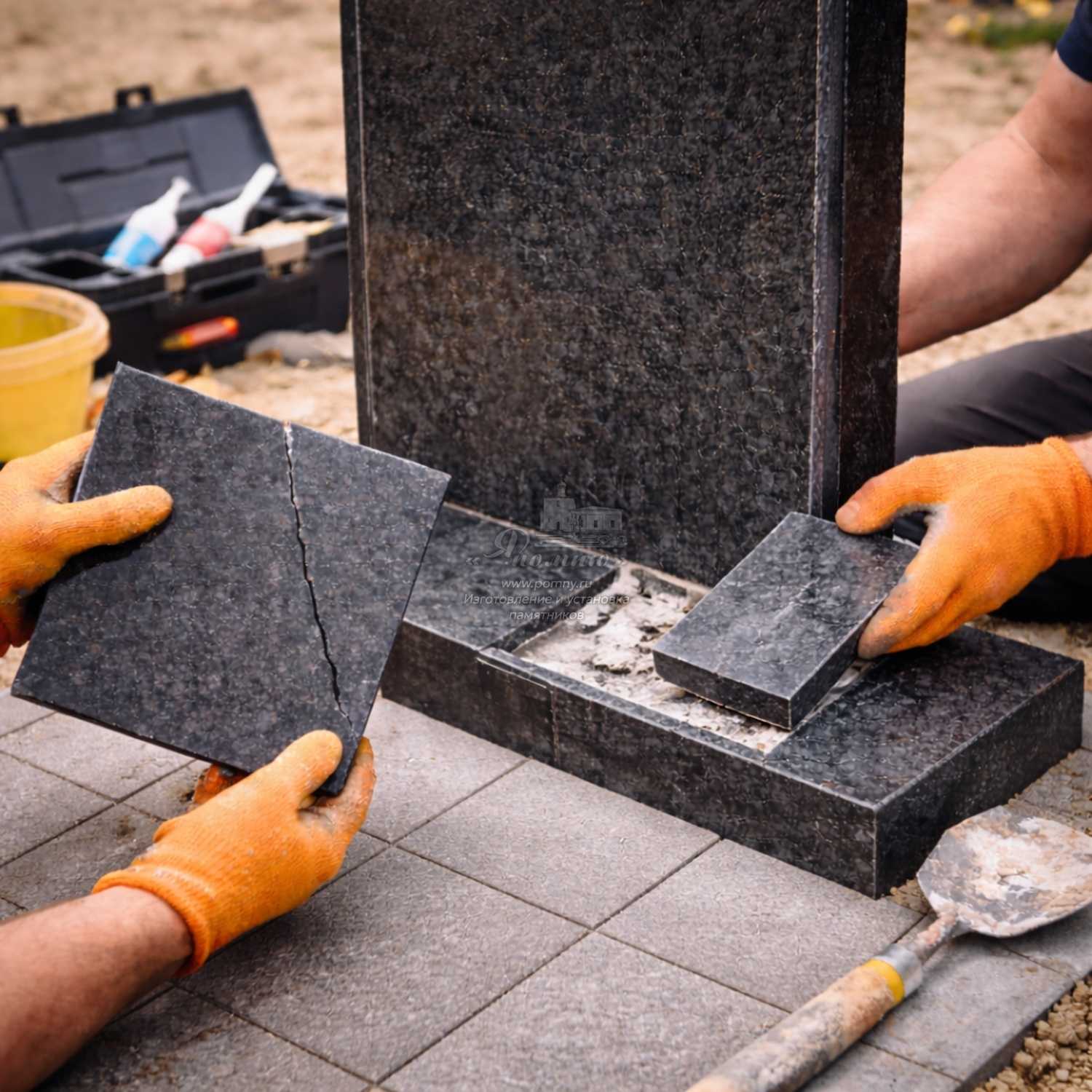 Ремонт плитки на памятнике или на могильном участке выполняется при трещинах, просадке, сколах и разрушении покрытия. В ходе работ поврежденные элементы заменяются или переукладываются, восстанавливается ровность и аккуратный внешний вид территории. Это помогает сохранить благоустроенность памятника и предотвратить дальнейшее разрушение покрытия.