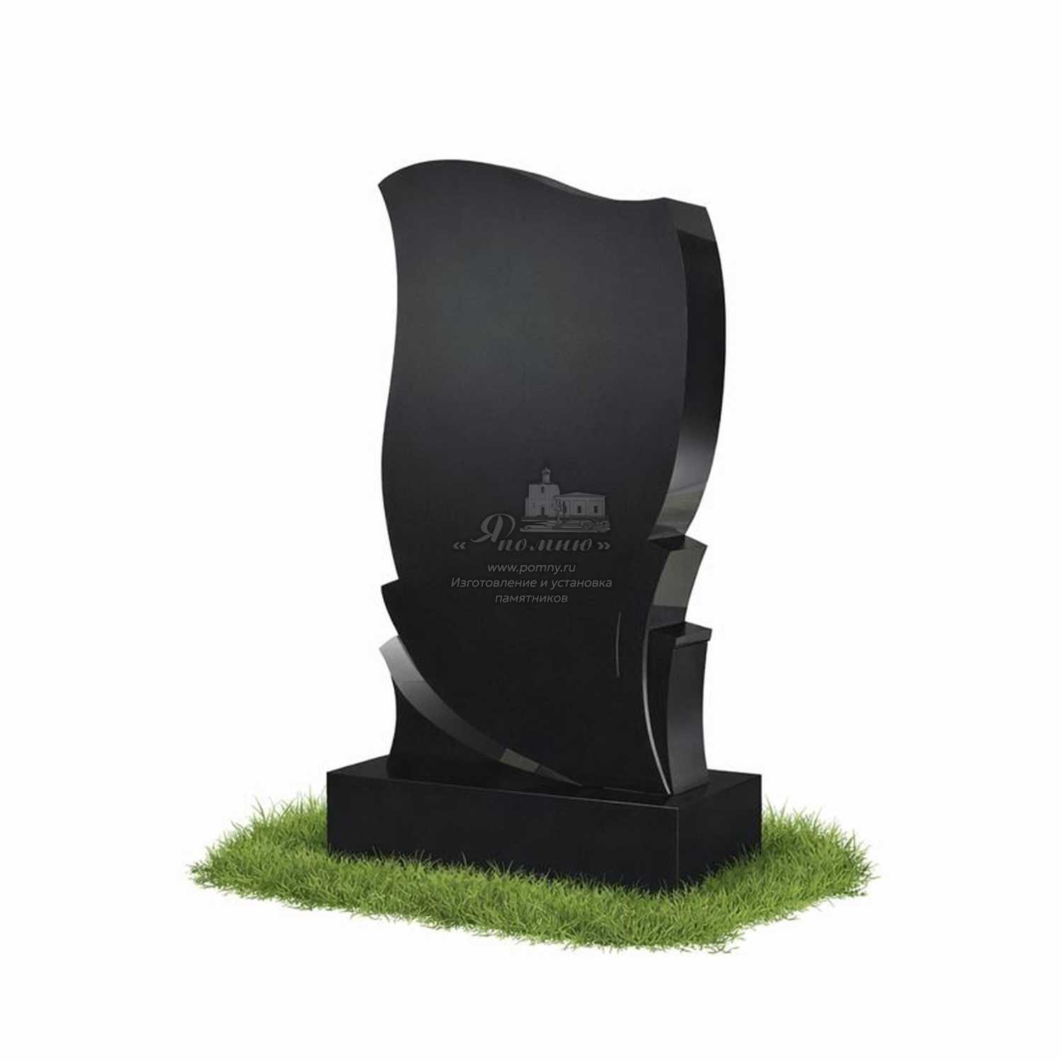 Памятник «Полярный изгиб» выполнен в плавной асимметричной форме с выраженным боковым контуром. Изгибы стелы создают ощущение движения и глубины, придавая композиции современный и сдержанно-выразительный характер. Такая форма подчёркивает индивидуальность памятника и визуально выделяет его на участке захоронения.