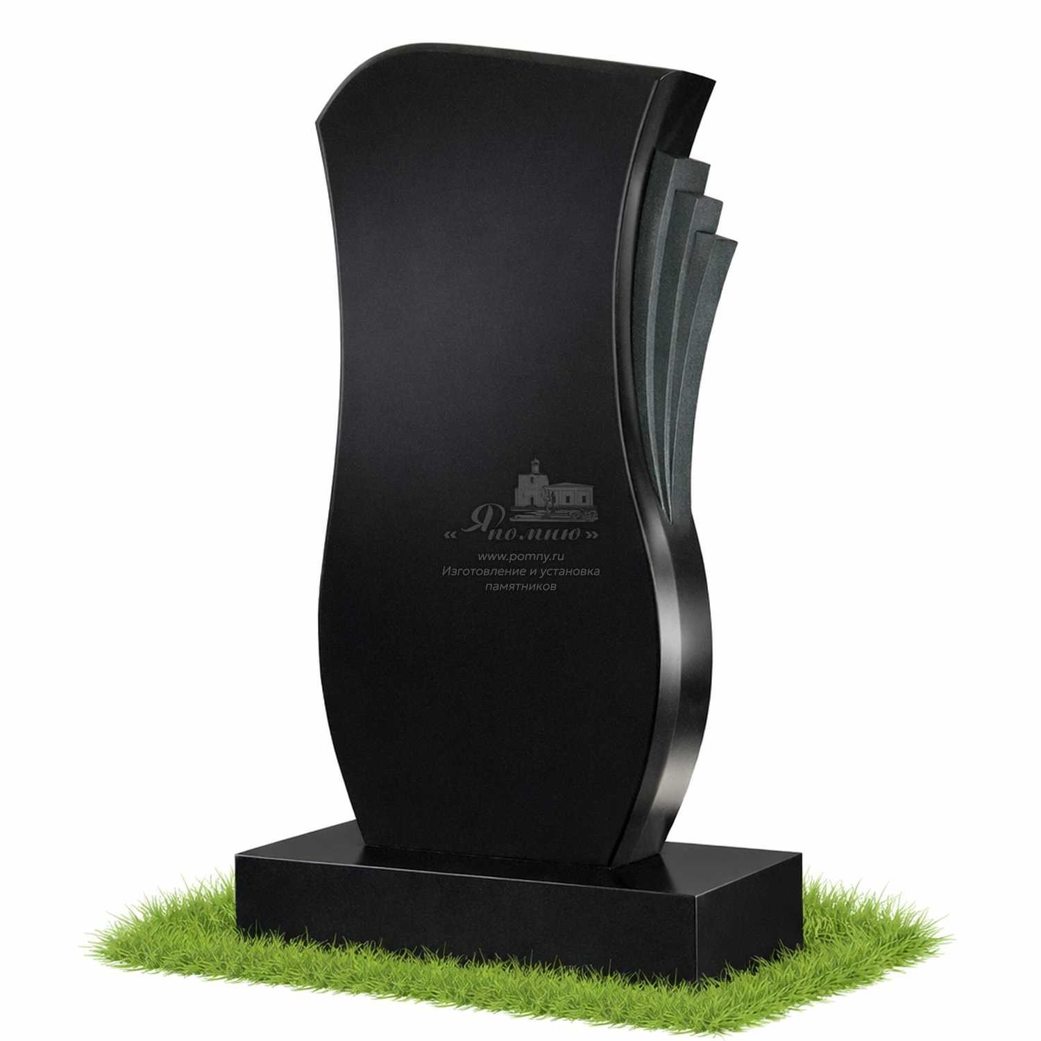 Памятник «Строгий ритм» выполнен в современном сдержанном стиле с плавной волнообразной линией стелы и выразительным боковым рельефом. Дополнительные вертикальные элементы придают композиции глубину и визуальную динамику, не нарушая общего ощущения строгости и достоинства.