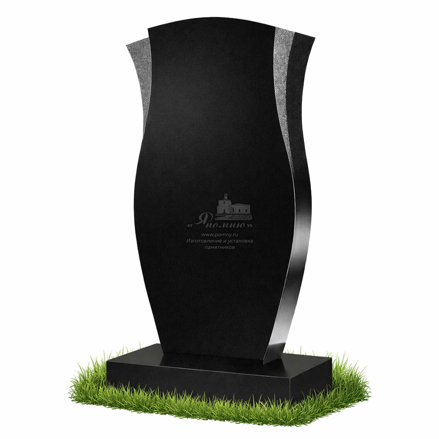 Памятник «Сдержанный поток» отличается плавной асимметричной формой с выразительными боковыми линиями, которые придают композиции глубину и визуальную динамику. При этом общий образ остаётся строгим и спокойным, что делает модель универсальной для классического оформления захоронения.